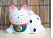 I found this little guy in Vancouver. He is a large white Neko with a lucky mallet, one little white friend and a little black friend. He is made of plaster and painted with some sort of hard enamel. His mitts and one of his ears broke off in transit because of his delicate nature.