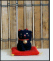 This tiny little Neko is made of a very light material... I think gypsum possibly. He is glued to his little fabric pillow so he won't lose it. He came in the lot from Taiwan with the little Neko above.