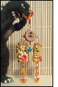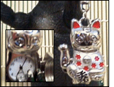 This is another hanging charm thingy. My mom gave me this one for my birthday as well and I think she bought it in China town. The kitty is a sort of contemporary cute cat and has coins and beads hanging below him. I have a similar one hanging from the rear view mirror in my car.