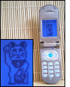 I debated whether to put this one in my collection or creations page. This is my cellphone with Maneki Neko screensaver. I made it by turning one of my Maneki Neko icons to greyscale and downloading the image to my phone. Now I have a Maneki Neko cellphone!