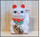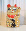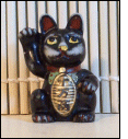 AThis was the first fortune cat I ever got. I found it in a tourist shop in China town that had lots of cheap ceramic trinkets, when I was visiting my mom. I bought a matching one for my friend Marsha. It's a bank but the butt plug is lost so the coins just fall out. The paint has started rubbing off too, but I still love it.